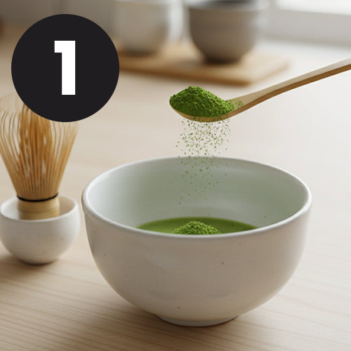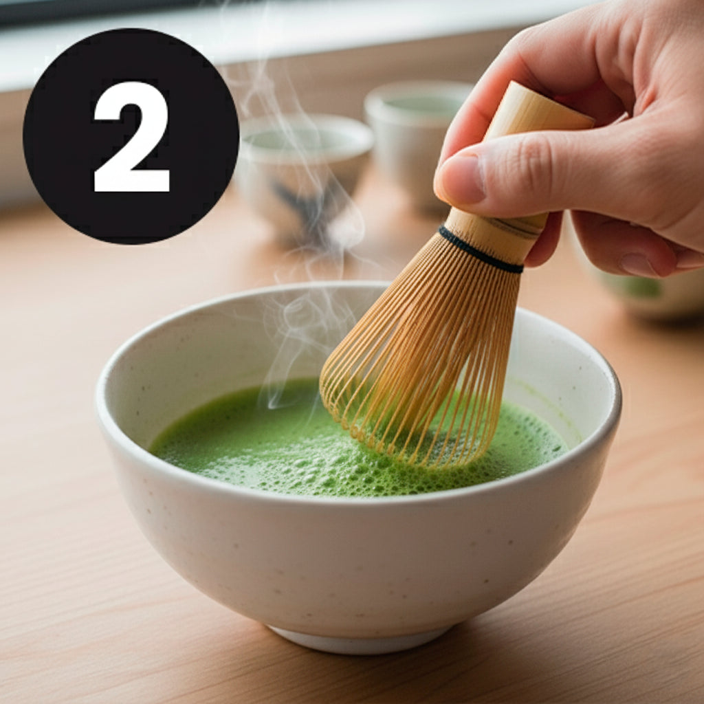 שימי 1-2 כפיות של אבקת מאצ'ה בכוס (מומלץ לנפות דרך מסננת קטנה כדי למנוע גושים). הוסיפי רבע כוס מים חמים (בסביבות 80 מעלות, לא רותחים!) וערבבי חזק בתנועות "W" או "M" למשך 15-30 שניות עד שנוצר קצף. אפשר לשתות ככה, להוסיף חלב ל"מאצ'ה לאטה", או לשפוך על קרח. כל התהליך לוקח 30 שניות.