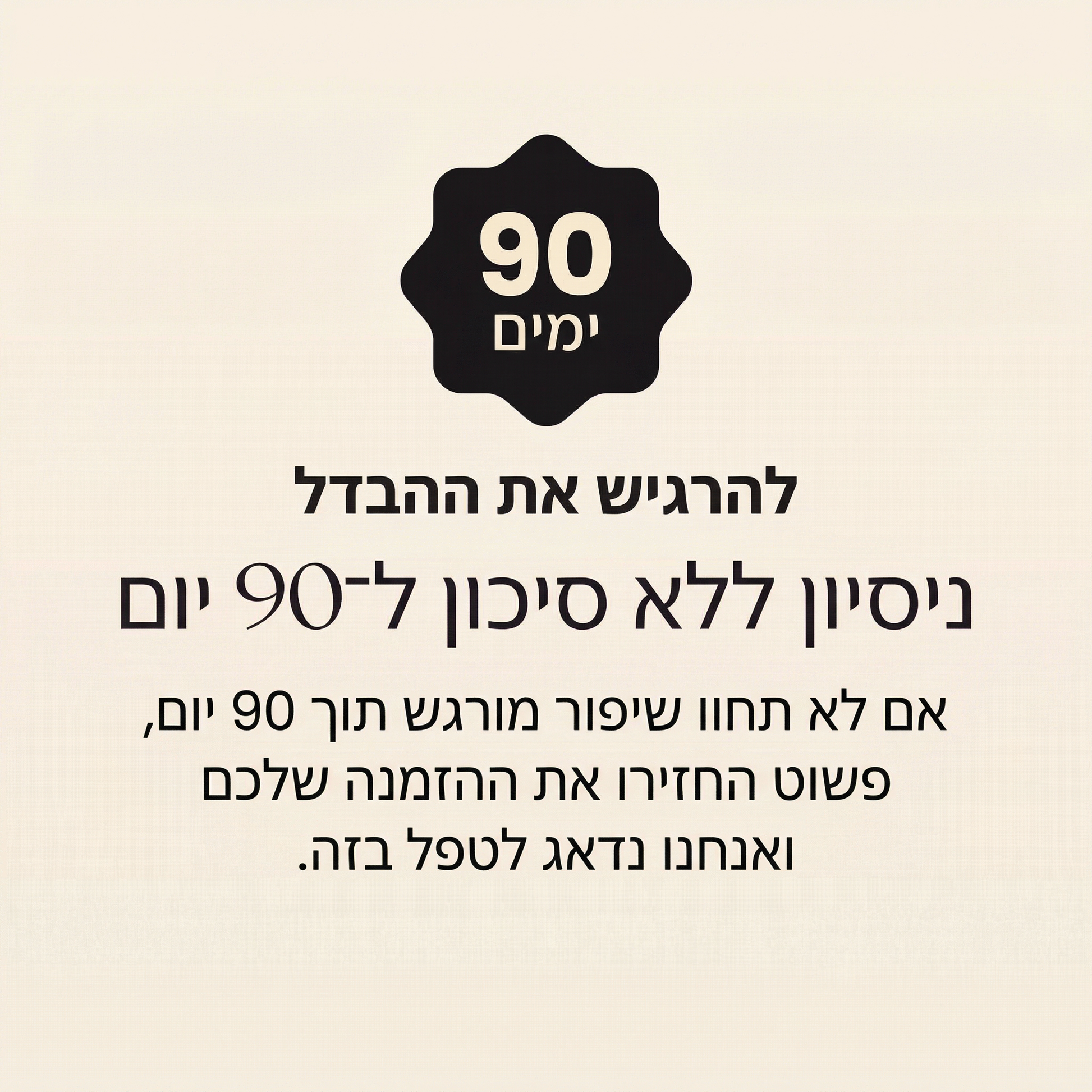 לנוחיתכם יש 60 ימי שביעות רצון – אם מסיבה כלשהי לא תהיו מרוצים, תקבלו החזר מלא ללא שאלות.